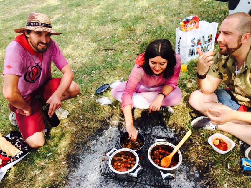 Exhaustos de bailar y reír, después de doce horas disfrutando de la noche jarrera, es hora de llenar el estómago. A las faldas del campo de batalla, una vez terminada la contienda, la gente se reúne en grupos de amigos alrededor de los sarmientos encendidos para preparar el almuerzo: los típicos caracoles con tomate, chorizo, morcilla, chuletillas, etc. Todo ello acompañado de un porrón fresquito de vino, esta vez si para beber…